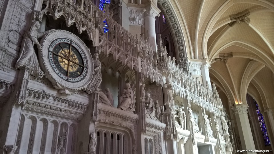 Sono le vetrate della Cattedrale di Chartres la bellezza più sorprendente; sono 176 vetrate del XIII secolo decorate con scene bibliche e nelle quali domina il famoso blu cobalto di Chartres; le bellissime ed ampie vetrate regalano agli interni un effetto di luce unico.