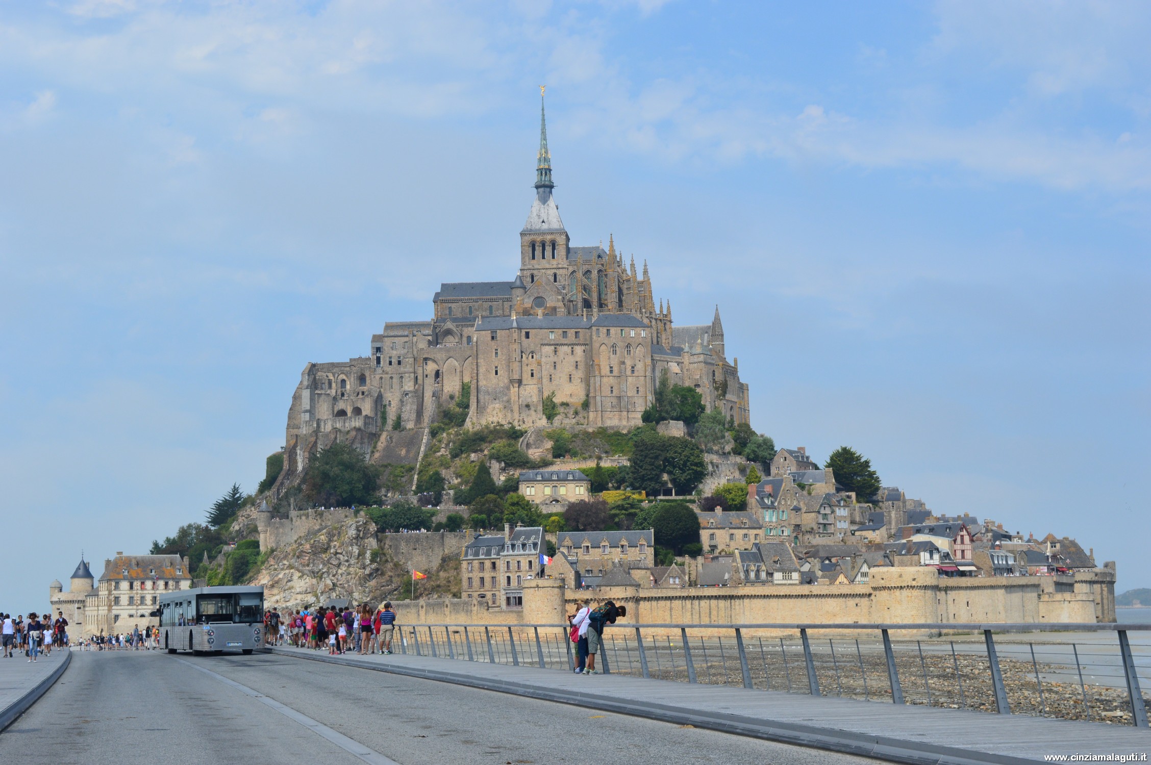 Mont Saint Michel si trova amministrativamente in Normandia, ma al confine con la Bretagna, a circa 70 chilometri da Rennes. Mont Saint Michel è uno spettacolo della natura e dell’architettura medioevale. Un’abbazia ed il suo borgo sono arroccati su un promontorio roccioso che, ogni 6 ore e 15 minuti, vedono allontanare il mare fino a scoprirne il fondo sabbioso e diventare penisola per poi, in altre 6 ore e 15 minuti, ritornare isola circondata dal mare; è il fenomeno delle maree che riguarda in maniere ampia e vistosa tutta la baia di Mont Saint Michel, con le relative località della Bretagna, per offrirci scenari spettacolari. Attenzione a camminare senza guida sulle sabbie scoperte dalla bassa marea perché alcune sono pericolose essendo sabbie mobili, quindi mantenetevi sulla via d’accesso prestabilita.