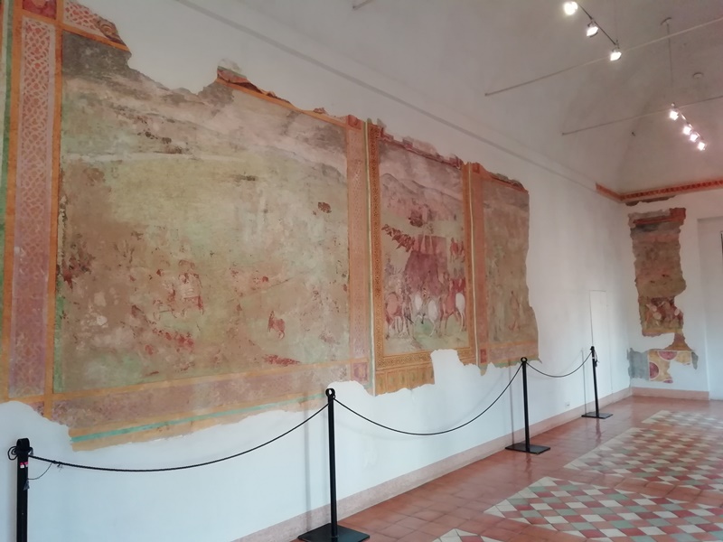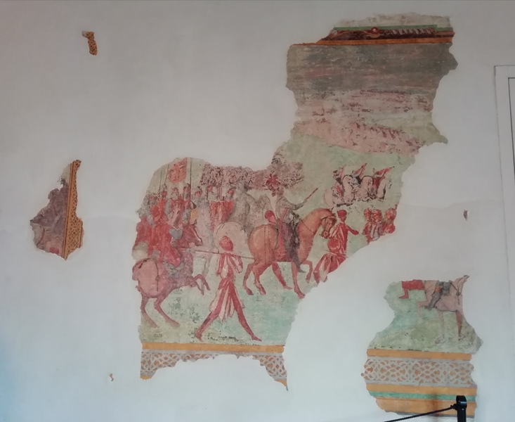 Salendo al piano nobile, si trova l’altra chicca del Castello: la Galleria delle Battaglie. Le pareti della Galleria delle Battaglie sono decorate con affreschi narranti importanti battaglie del Cinquecento che coinvolsero il Duca Alfonso I d’Este e i condottieri della famiglia Pio. Battaglie di terra e di mare sono rappresentate con dovizia di particolari; purtroppo, solo una parte degli affreschi è riconoscibile, ma è sufficiente per ammirare interessanti particolari.