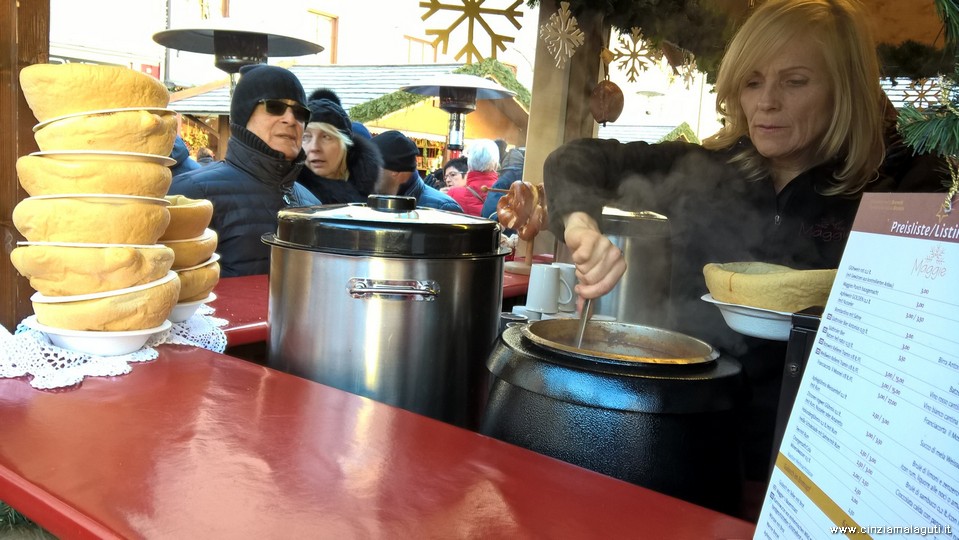 La graziosa cittadina vescovile si trova a nord di Bolzano sulla via per il Brennero ed ospita uno dei mercatini più belli della regione, anzi oserei dire il più bello. Ben distribuito nella grande piazza ai piedi della bellissima Cattedrale in stile barocco e circondato da palazzi centenari, il mercatino natalizio di Bressanone ammalia con la sua eleganza scenografica e le sue luminarie disposte sapientemente per creare la giusta atmosfera ed a cui i turisti (e i commercianti) non possono che strizzare l’occhio.