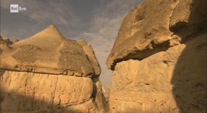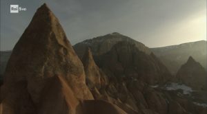 Origine. Sull’altipiano dell’Anatolia centrale, milioni di anni fa, i vulcani attivi crearono delle strane e bellissime formazioni rocciose; due montagne vulcaniche furono attive quattro volte ed è per questo che nelle formazioni rocciose si riconoscono quattro livelli distinti; sono serviti, all’incirca, 50.000 anni per dare alle rocce vulcaniche le forme bizzarre che possiamo oggi ammirare.