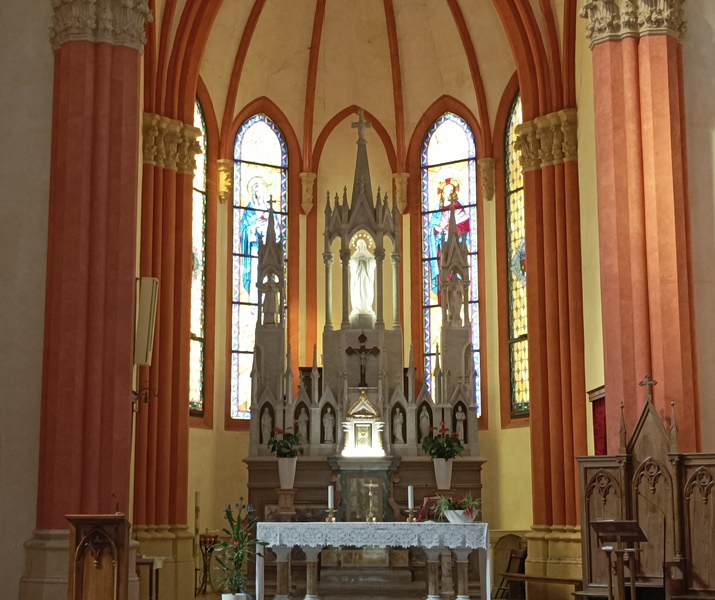 Chiesa di Santa Maria di Venezzano: il neo-gotico nella pianura bolognese. Nella frazione Mascarino Venezzano, comune di Castel d’Argile, nel mezzo della pianura bolognese tra campi di frumento e di girasole, si trova una Chiesa parrocchiale che sembra una Cattedrale per dimensioni e ricchezza artistica.