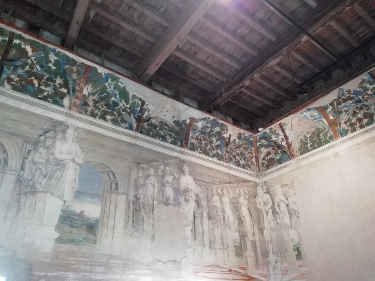 Degli antichi splendori rinascimentali qualcosa è rimasto: la Sala della Vigna. La Sala della Vigna era la sala da pranzo dei ricevimenti degli Estensi e sono visibili alcuni affreschi sulle pareti, spesso solo frammenti, ma sufficienti per comprendere la magnificenza del luogo ai tempi del Rinascimento; una decorazione di vigne sul bordo del soffitto dà il nome alla sala. E’ presente un plastico con la ricostruzione della Delizia di Belriguardo nel pieno del suo splendore, da cui potrete immaginare quanto superlativo fosse questo sito, definito la Versailles degli Estensi.