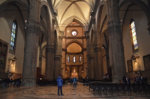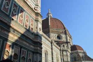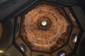 La Cupola della Cattedrale fu realizzata da Filippo Brunelleschi tra il 1418 ed il 1436, rappresenta la più audace invenzione architettonica del ‘400; ha un diametro interno di 42 metri e raggiunge un’altezza di 107 metri. L’enorme calotta interna, visibile entrando in Cattedrale, è affrescata con scene del Giudizio Universale, iniziate da Giorgio Vasari e completate, per la maggior parte, da Federico Zuccari e collaboratori.