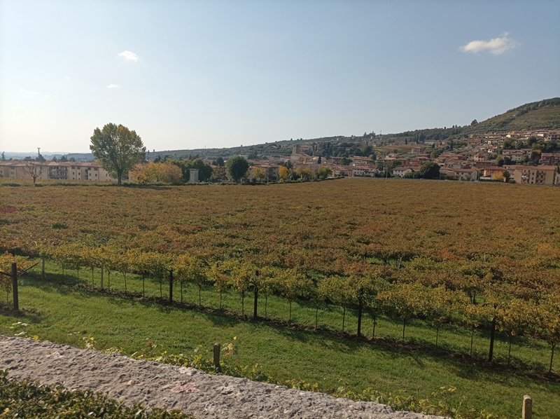 Sul fianco occidentale, la villa e il giardino sono cinti da estese vigne, dalle quali si ottiene buona parte delle uve che contribuiscono, fra gli altri, alla produzione del Valpolicella Ripasso Classico Superiore e degli Amarone Guerrieri Rizzardi.