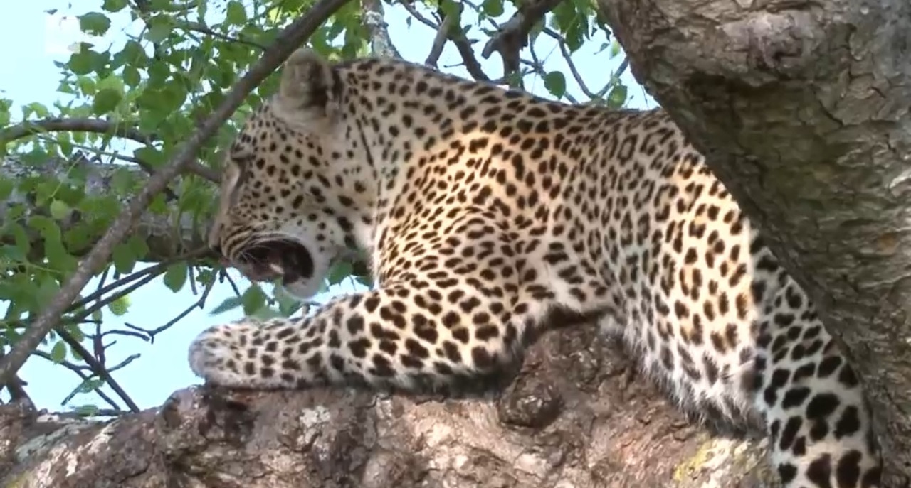 Il leopardo è un carnivoro solitario con una vista eccezionale ed un olfatto sviluppato; quest’ultimo non gli serve tanto per cacciare, quanto per individuare i messaggi territoriali della sua specie e la presenza di femmine. Il leopardo trascorre la maggior parte del suo tempo a terra, ma si trova a suo agio anche sugli alberi, dove va per cercare refrigerio e per portare al sicuro le sue prede, onde evitare che qualche altro carnivoro gliela porti via. Il leopardo vive in un areale molto esteso, l’importante per lui è che vi sia vegetazione sufficiente per potersi riparare. La sua dieta è molto flessibile, dalle gazzelle, il suo cibo preferito, ai piccoli mammiferi, ai rettili, agli uccelli, agli insetti; contrariamente a quanto si dice, raramente attacca i babbuini. La riproduzione avviene ogni 2 anni con delle cucciolate da 1 a 3 piccoli che nascono ciechi e non pesano più di 500 gr; i cuccioli trascorrono le prime settimane di vita ben nascosti tra i cespugli, soprattutto se in giro ci sono altri carnivori; la madre dedica loro molto tempo, li allatta fino a 3 mesi, poi la dieta diventa carnivora, ma dovranno aspettare 1 anno prima di diventare predatori e cibarsi autonomamente.