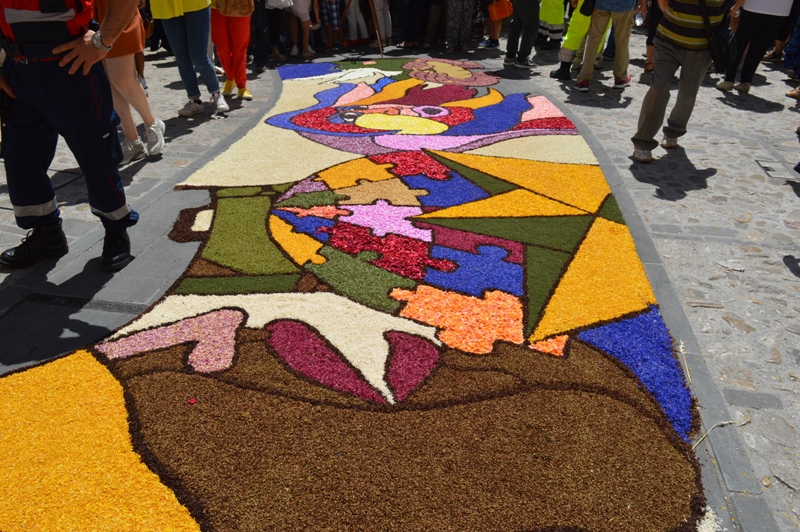 La bellezza dei disegni e la precisione con cui gli infioratori li realizzano con petali e foglie, si combina perfettamente con la cura dei vicoli e dei balconi fioriti che fanno di Spello un gioiello di arte effimera e colori estivi durante questo evento.