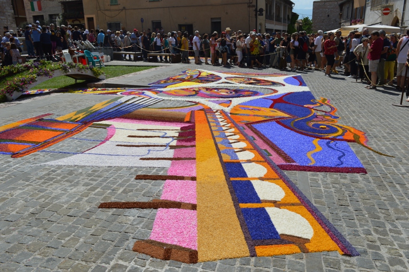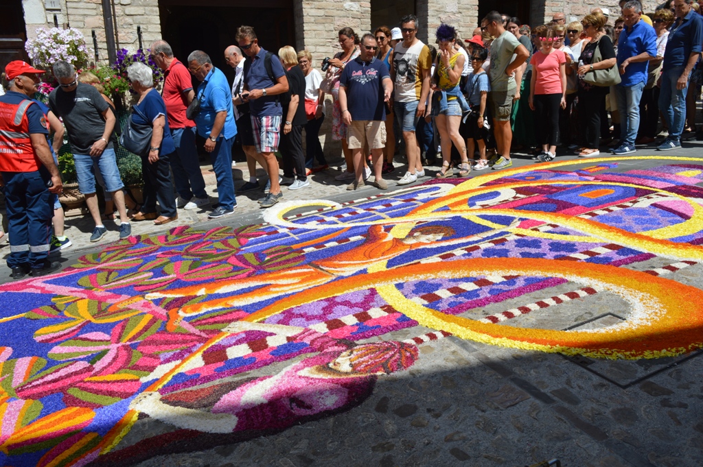 Infiorata di Spello è un evento spettacolare che si svolge a Spello, in Umbria, in occasione del Corpus Domini, ossia nella nona domenica dopo Pasqua. Tappeti floreali a tema religioso, tanto meravigliosi quanto effimeri, abbelliscono – per alcune ore – un borgo già bello di per sé.