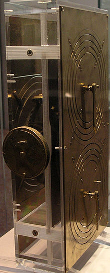 L’invenzione della macchina di Anticitera è fatta risalire al 100-150 a.C. e la sua scoperta ha una storia originale. A inizio Novecento, un gruppo di pescatori si immerse nelle acque dell’ isola di Anticitera, a sud del Peloponneso, per cercare spugne, ma invece delle spugne trovarono il relitto di un naufragio avvenuto nel I secolo a.C.. Il ritrovamento ha permesso di recuperare diversi e preziosi manufatti, tra i quali un calcolatore meccanico a cui è stato dato il nome del luogo del ritrovamento, appunto “macchina di Anticitera”. Il congegno ritrovato è dotato di un complesso meccanismo che fungeva da misuratore per il calendario solare e lunare, dove le ruote dentate permettevano di calcolare il sorgere del sole, le fasi lunari, gli equinozi e lo scorrere del tempo. Il calcolatore meccanico di Anticitera è considerato il più antico della storia; nelle sale del Museo Archeologico Nazionale di Atene è conservata la macchina in rame ritrovata – delle dimensioni di circa 30×15 cm, coperta da oltre 2000 caratteri non ancora del tutto decifrati – e la sua ricostruzione completa, ossia la macchina come gli studiosi hanno immaginato fosse nella sua interezza.