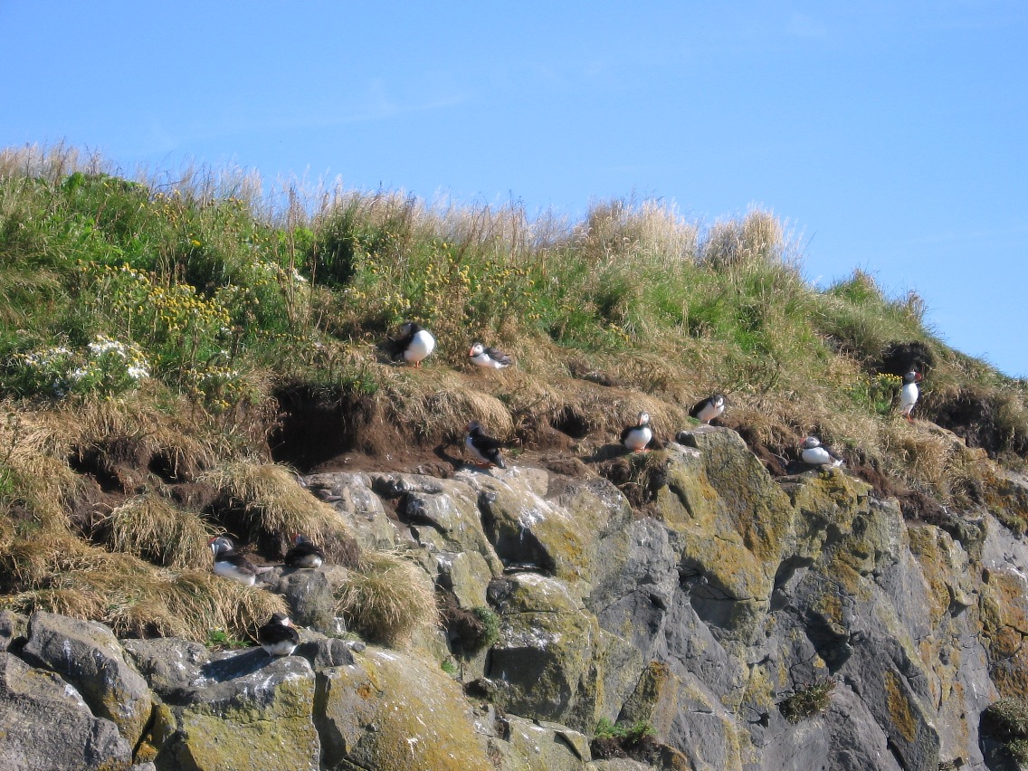 Oltre alle balene, in primavera, tornano in Islanda le fratercule artiche, meglio conosciute come pulcinelle di mare; sono simpatici uccelli marini che tornano sulle scogliere islandesi per riprodursi, in un numero che arriva anche a 10 milioni di esemplari; la colonia di fratercule che nidifica in Islanda è la più grande al mondo. Il becco delle pulcinelle di mare è spettacolare, ma ogni fratercula ha un becco unico, riconoscibile all’interno della colonia, al punto che quando ritornano sull’isola per riprodursi, si riconoscono e si accoppiano di nuovo; la femmina depone un solo uovo a stagione e la coppia fa a turno per covarlo e difenderlo. Andate a sud, nella zona delle falesie Dyrtholaey, a circa 10 km da Vik, non vi sarà difficile vederle, in estate.