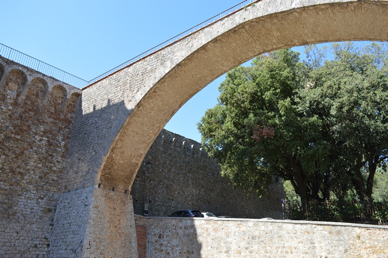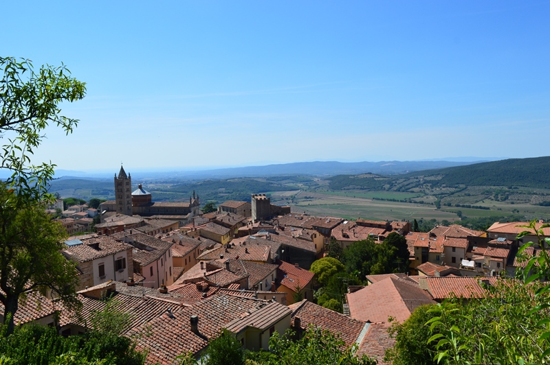 Dopo aver ammirato tanta maestria e bellezza, incamminiamoci verso il Castello, prendendo il vicolo che sale a destra, oltre la piazza. Il Castello fu costruito dai Senesi che presero il controllo della città nel 1335. Giunti in cima, noterai l’ampio arco che è di notevole valore architettonico per la sua ampiezza e stabilità. Se prosegui lungo le mura, arrivi ad una balconata panoramica dalla quale puoi ammirare il borgo, le colline metallifere ed anche il mare.