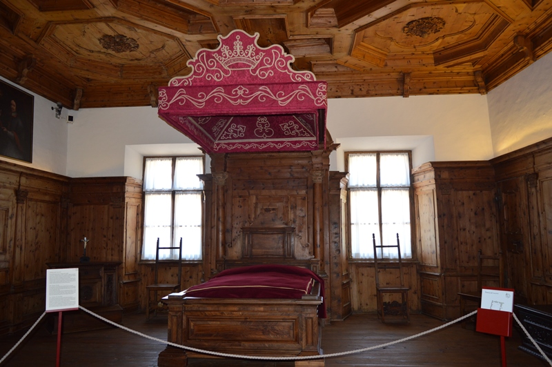 All’interno si susseguono numerose stanze che conservano i ricchi arredi originari e un’interessante quadreria di famiglia. L’ambiente più celebre e spettacolare è la cinquecentesca Stanza del Vescovo, interamente rivestita in legno di cirmolo, soffitto compreso; ci sono, poi, cucine, una sala d’armi, salotti e stanze da letto; un bel loggiato permette di ammirare dall’alto il superbo cortile interno. Il Castello è stato sempre abitato, conservandosi nel tempo come dimora arredata.