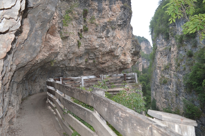 Lascia l’auto presso il parcheggio del Museo Retico (strada statale 43d) a Sanzeno. Di fronte al Museo inizia il sentiero panoramico che in circa 50 minuti arriva al Santuario di San Romedio. Questo percorso è chiamato Sentiero nella Roccia perché è scavato nella roccia, in certi punti occorre abbassarsi per non urtare, ma non è pericoloso se si fa un minimo di attenzione, in compenso è divertente e panoramico; corre lungo il costone della montagna, ben protetto da una spessa staccionata in legno. Il sentiero prosegue nel bosco, poi affianca la strada asfaltata e un breve tratto è su strada; giunti sotto il Monastero, una scalinata conduce all’ingresso.