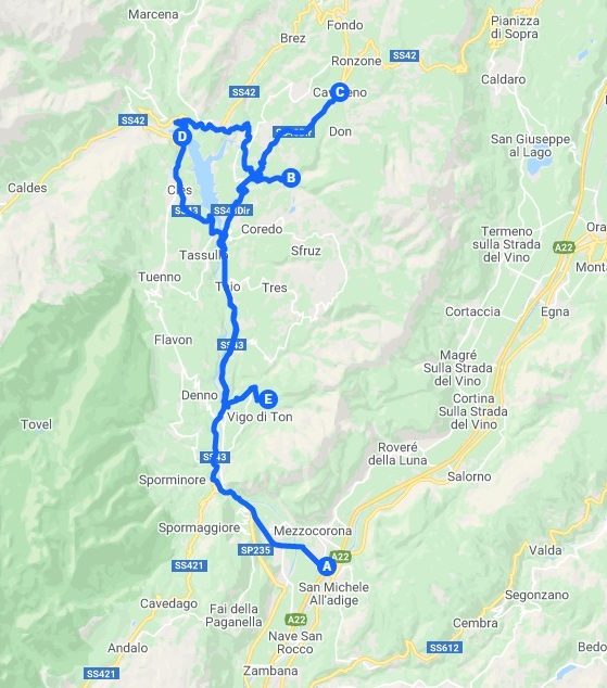 Val di Non è una valle del Trentino che si trova a ovest del fiume Adige, a nord di Trento, adiacente alla Val di Sole. E’ una valle dagli ampi spazi e dalle larghe vedute, caratterizzata dalla presenza di numerosi canyon. L’itinerario che descrivo tocca suggestivi luoghi storici ed affascinanti bellezze panoramiche: Santuario di San Romedio, Lago di Santa Giustina, Castel Thun con “campo base” nella tranquilla e graziosa Cavareno/Amblar a 1000 metri di altitudine. Se avete più tempo potete visitare il Canyon Rio Sass a Fondo e il Parco Fluviale Novella a Romallo.