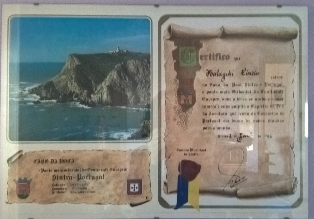 Cabo de Roca, certificato ricordo