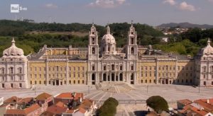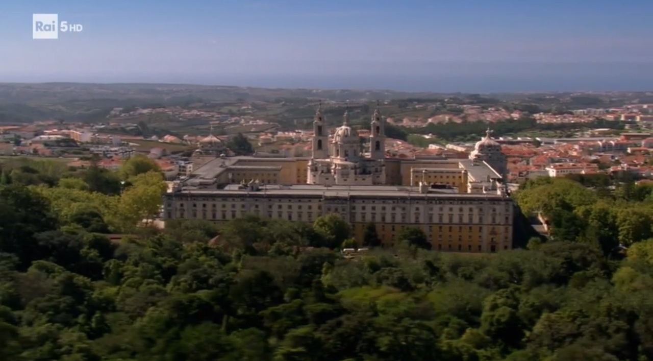 Palacio Nacional de Mafra dista circa 40 chilometri da Lisbona, ha 1200 stanze, 5200 porte, 2500 finestre, 154 scalinate e nella Biblioteca ci sono 40000 libri su tutte le materie e provenienti da tutto il mondo. E’ un palazzo monastico costituito da due corpi rettangolari laterali ad uno centrale comprendente la basilica con le sue due torri. Esso fu fatto costruire dal re Giovanni V per i monaci in seguito al voto fatto da re nel 1711, che promise di innalzare un convento se sua moglie gli avesse dato dei discendenti; la moglie Maria Anna d’Austria rimase incinta, ma di una femmina, tuttavia il re avviò i cantieri ed in seguito utilizzò il palazzo come avamposto per la caccia nei boschi confinanti e servì da residenza secondaria per la famiglia reale.