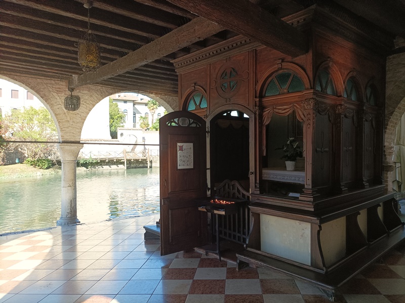 Dopo un buon caffè in uno dei tanti bar del Corso Martiri della Libertà, prendete una delle calli che conducono sul lungofiume e, in prossimità dei Mulini di Sant’Andrea, sotto un bel porticato, si trova l’Oratorio della Madonna della Pescheria, affacciato quasi direttamente sulle acque del fiume Lemene e risalente al Seicento.