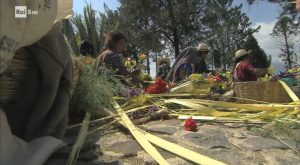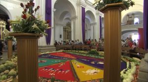 Nella Chiesa, i fedeli pregano davanti alle belle statue lasciate dal colonialismo spagnolo e sui tappeti di fiori dispongono frutta e verdura, per ricordare l’orto dove Gesù si ritirò prima prima della sua condanna a morte. I tappeti di fiori vengono preparati anche da ogni famiglia la cui casa si trova lungo il percorso della processione e sono a tema libero.