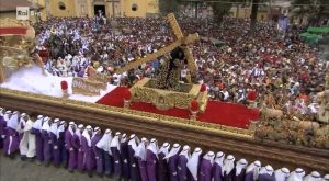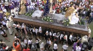 Le processioni sono tante e diverse, si svolgono tutti i giorni della settimana santa, ma quella più vivace parte dalla Chiesa de la Merced e si svolge la domenica delle palme; uomini, chiamati cucuruchos, sorreggono una piattaforma decorata con in cima la statua di Cristo, indossando tonache viola e sorreggendo, ciascuno, un peso tra i 30 ed i 40 kg; donne, chiamate carcadoras, sorreggono la statua della Vergine Maria, indossando vestiti a scelta, ma rigorosamente del colore indicato, di solito beige o bianco; la statua di Cristo passa sopra i tappeti di fiori, dopodiché i tappeti vengono benedetti, poi spazzati via.