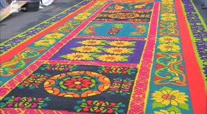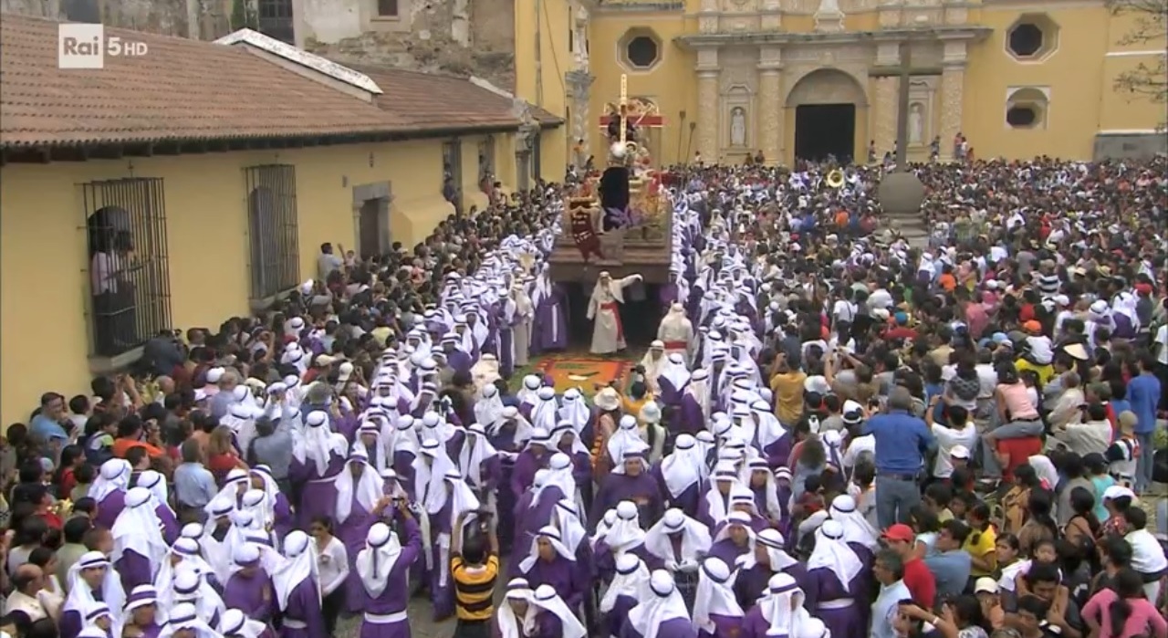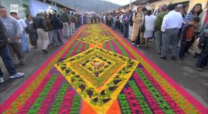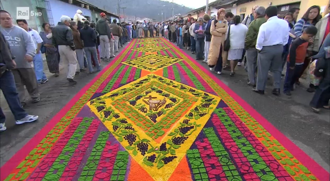 Antigua Guatemala è una cittadina collocata sulle prime montagne del Guatemala, nel Centro America, fondata all’inizio del XVI secolo dai conquistatori spagnoli; tra le tante tracce storiche della colonizzazione spagnola, vi sono anche le elaborate celebrazioni religiose che si svolgono nella settimana santa, semana santa nei paesi di lingua ispanica. Splendidi ed enormi tappeti di fiori accolgono le processioni, al tempo stesso solenni ed allegre.