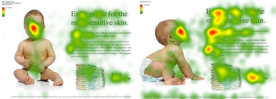 L’ eye tracking rileva i movimenti oculari e dove si ferma lo sguardo permettendone un impiego interessante anche nel campo della pubblicità. Le società di marketing, infatti, usano le mappe di colore basate sull’ eye tracking per capire dove si fissa il nostro sguardo quando guardiamo una pubblicità fornendo così dati importanti per renderla più efficace; ad esempio, se una mappa di colore rileva che lo sguardo dell’utente è catturato dal volto di un bambino, modificando la pubblicità in modo che il bambino guardi il blocco di testo, i pubblicitari portano anche su di esso l’attenzione del lettore.