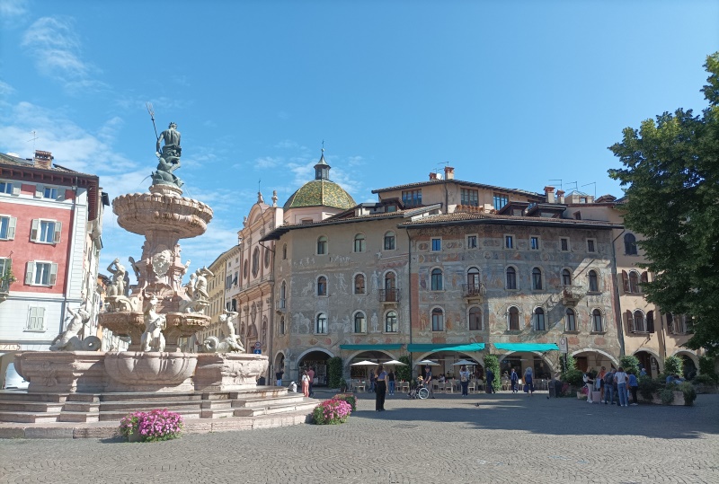 La bella e quadrata Piazza del Duomo di Trento è caratterizzata dalla presenza della Cattedrale di San Vigilio, della Fontana del Nettuno, del Palazzo Pretorio e di Palazzi Storici rinascimentali con pareti esterne affrescate. Altri bei Palazzi Storici affrescati esternamente si trovano su Via Belenzani, la via che arriva in Piazza Duomo da Via Roma e Via Manci.
